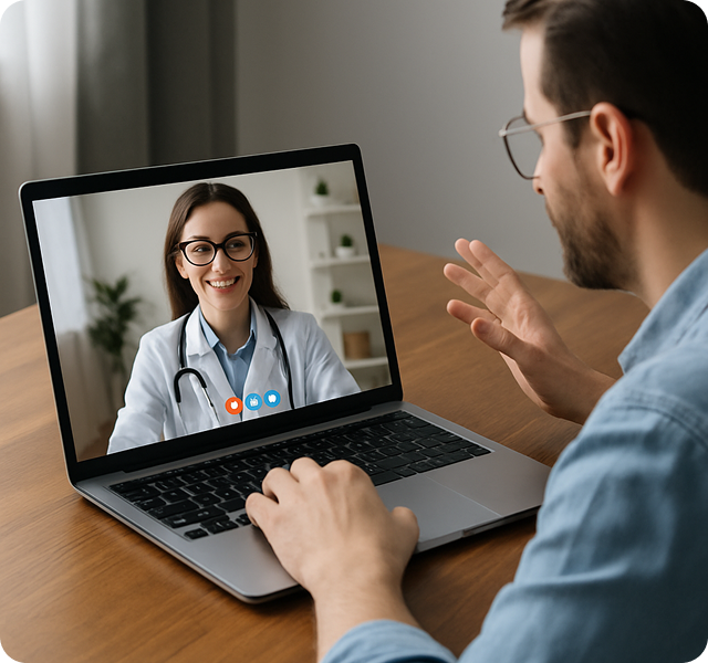 Sobald deine Ergebnisse vorliegen, buchst du ein Videogespräch mit einer Fachärztin oder einem Facharzt.